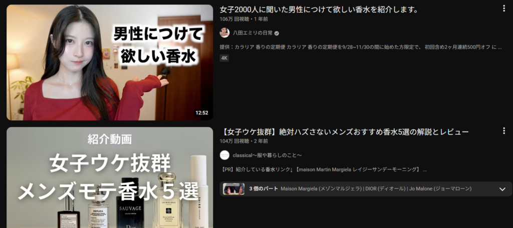 関連記事「」ではどんな香水がおすすめかも含めて解説しているので、気になる人はご覧ください。