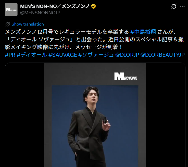 実際にメンズノンノで「中島裕翔」や「道枝駿佑」が紹介していました。