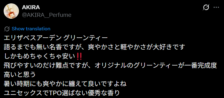 コスパを重視するなら、エリザベスアーデングリーンティーは間違いなくトップクラスの香水にあげられます。