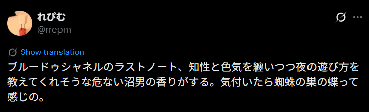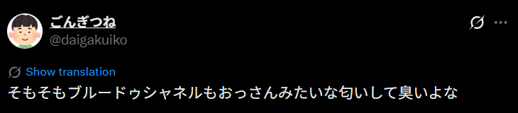 ブルードゥシャネルに対して「おっさん臭い」といった悪い口コミが見られました。